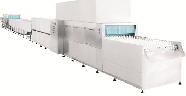 鏈傳送式洗碗碟機,也叫長龍式洗碗碟機、帶傳式洗碗碟機。加熱方式分為蒸汽式和電氣式兩種形式,采用標(biāo)準(zhǔn)單元組合結(jié)構(gòu),標(biāo)準(zhǔn)化加工生產(chǎn)制造。主要有:預(yù)清洗單元(55℃)、清洗單元(60℃)、強力高溫漂洗單元(75℃)、高溫凈水漂洗消毒單元(85℃)組成。適用于餐具消毒中心、學(xué)校后勤食堂、企事業(yè)單位食堂、快餐公司、餐館酒店等大型餐飲場所。每小時洗滌量為3000至8000套餐具,可以清洗各種杯、盤、碗、碟、快餐盤、塑料托盤等食器。
