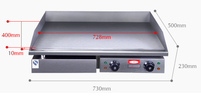| 往平扒爐上均勻的倒入少許食用油,接通平扒爐電源 |